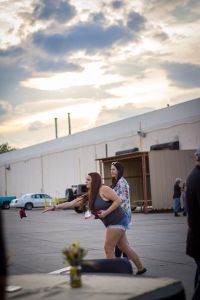 - The project’s groundbreaking celebration was another standout event, held outdoors under a cooled tent set up in the sales center parking lot. All details, including catering from the popular Captain Billy’s Whiz Bang Burgers, margarita machines, beer service, and music from a live DJ were planned. Floral arrangements in hard hats added a playful construction-themed touch, while large tractors parked around the property created a striking visual display. Guests who RSVP’d in advance received suite tickets to an upcoming Texas Rangers game as an added incentive.